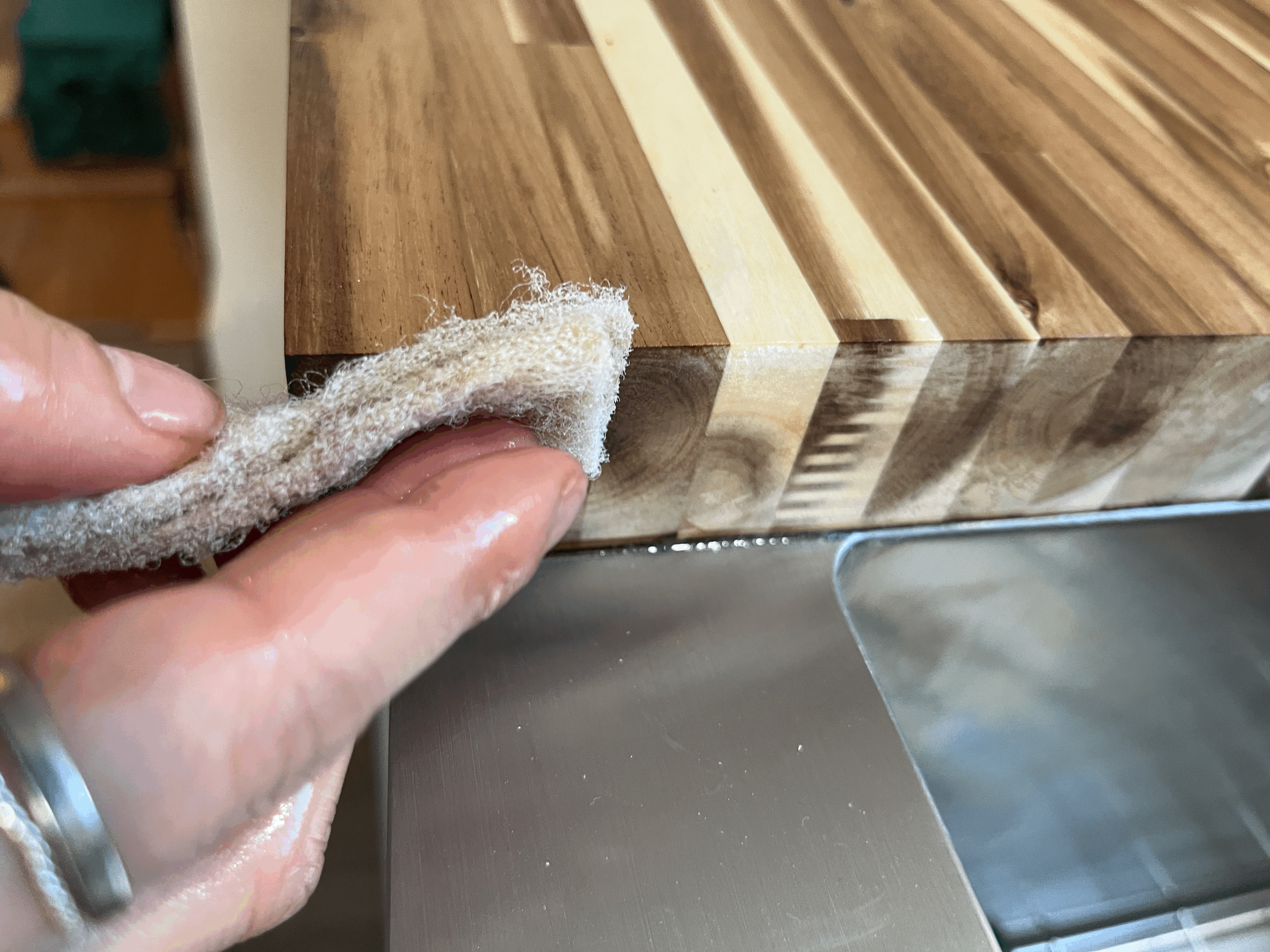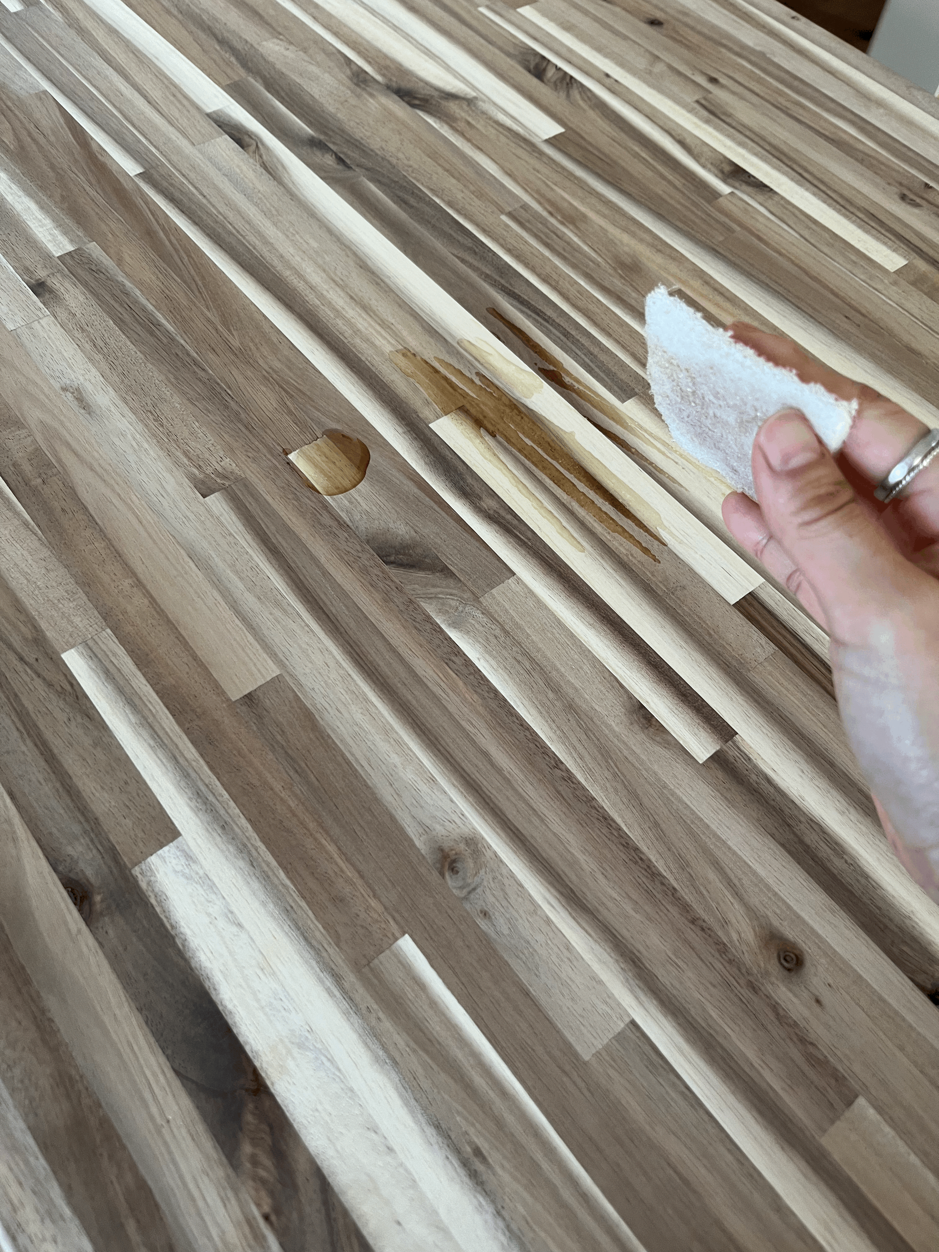 Even though I applied enough oil around the sink I was so anxtious because it's the most water exposed area. (I also applied the oil in the hole where the faucet goes in.)