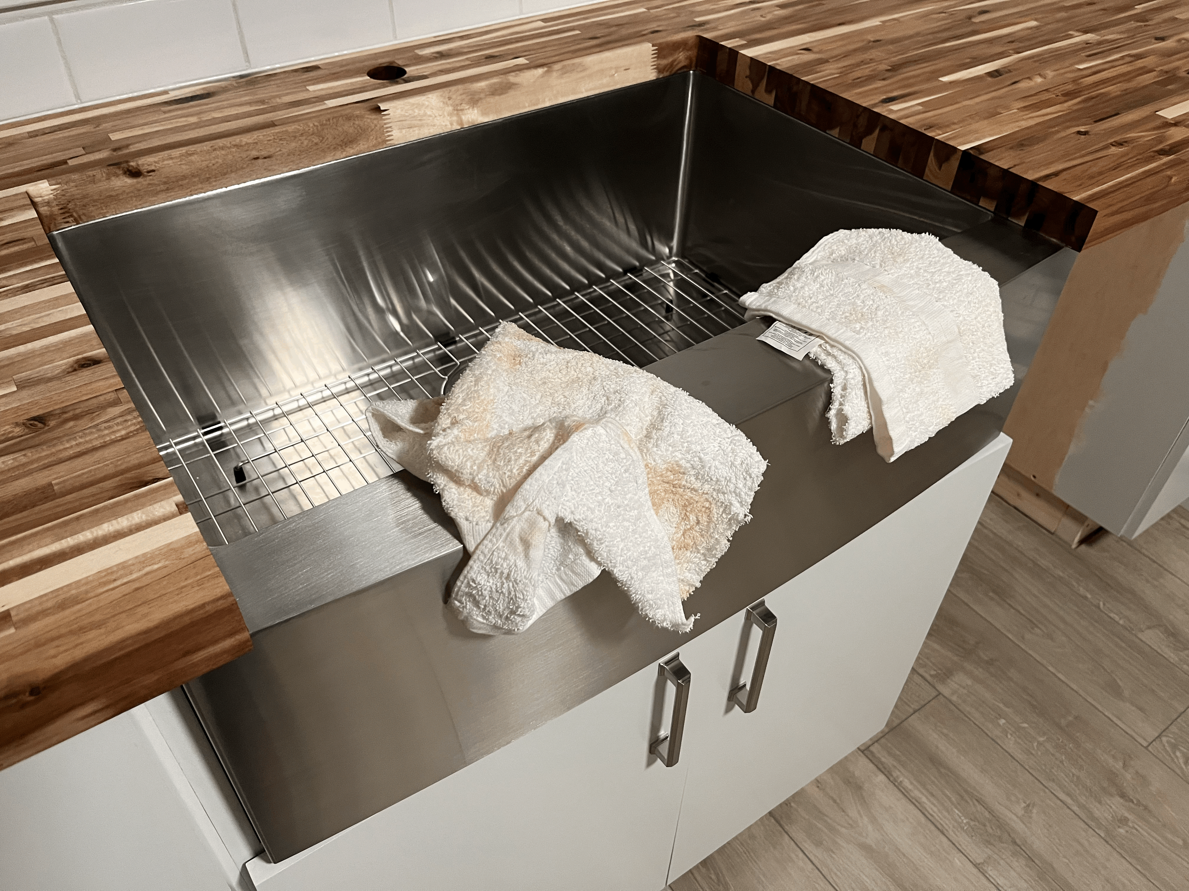 Last weekend, my husband and I finished a first coat of sealing of our butcher block countertop.
